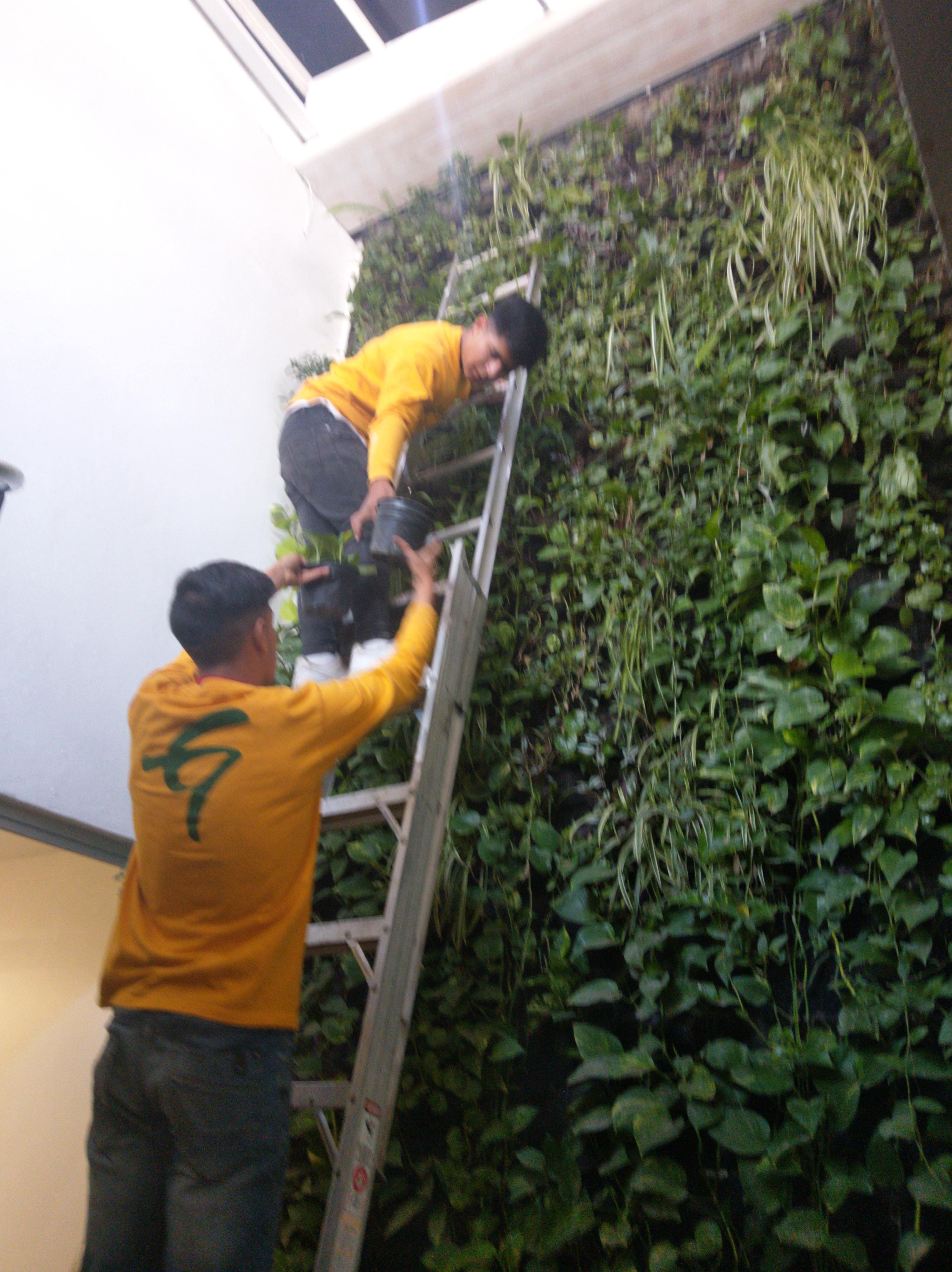 Las plantas se seleccionan de acuerdo a la intensidad de luz sin un diseño específico, combinando las distintas especies para el desarrollo óptimo y sustentable de las mismas, de esta forma se genera un micro ambiente y se protegen entre sí a lo largo del año, disminuyendo así los mantenimientos correctivos.